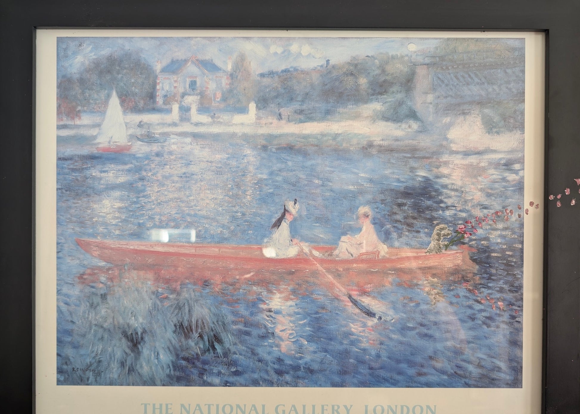 I love finding art at ARC and reinterpretating it. This is a classic Renoir that was missing a passenger, so I added a bunny in the Renoir style with flower petals blowing away and off the frame. I've done a few of these and they always make me smile.